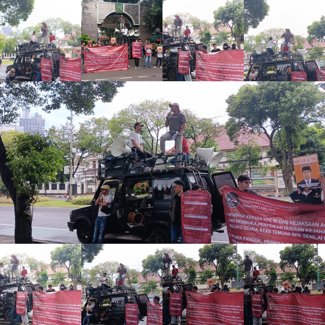 Jakarta, Jumat, 9 Januari 2026 — Sentrum Mahasiswa Indonesia Halmahera Barat DKI Jakarta (SEMAINDO Hal-Bar) kembali menggelar aksi unjuk rasa Jilid II di depan Kejaksaan Agung RI, Komisi Pemberantasan Korupsi (KPK) RI, dan Komisi Pemilihan Umum (KPU) RI. Aksi ini merupakan bentuk tekanan lanjutan atas temuan Badan Pemeriksa Keuangan (BPK RI) terhadap pengelolaan anggaran Pemilu pada KPU Provinsi Maluku Utara, KPU Kabupaten Halmahera Selatan, dan KPU Kota Tidore Kepulauan yang dinilai sarat penyimpangan dan berpotensi merugikan keuangan negara.