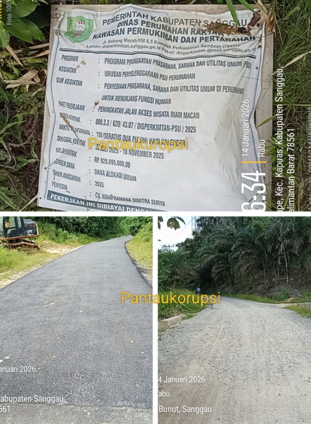 Kalbar, Sanggau: Mutu hasil pekerjaan kembali dipertanyakan. Proyek Peningkatan Jalan Akses Wisata Riam Macam Kabupaten Sanggau segede Rp.928 Juta dari kantong DAU, dianggap masyarakat tidak mencerminkan kualitas maupun kwantitas.