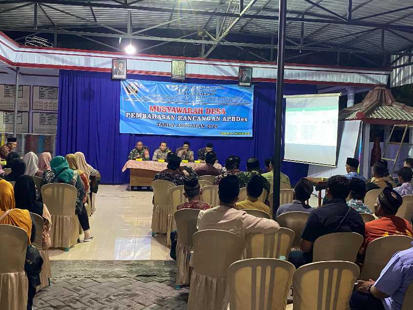 Musdes dihadiri oleh unsur pemerintah desa, Muspika, tokoh masyarakat, serta warga desa. Dari sekitar 70 warga yang diundang, tercatat 65 orang hadir, menunjukkan tingginya partisipasi dan kepedulian masyarakat terhadap perencanaan pembangunan desa.