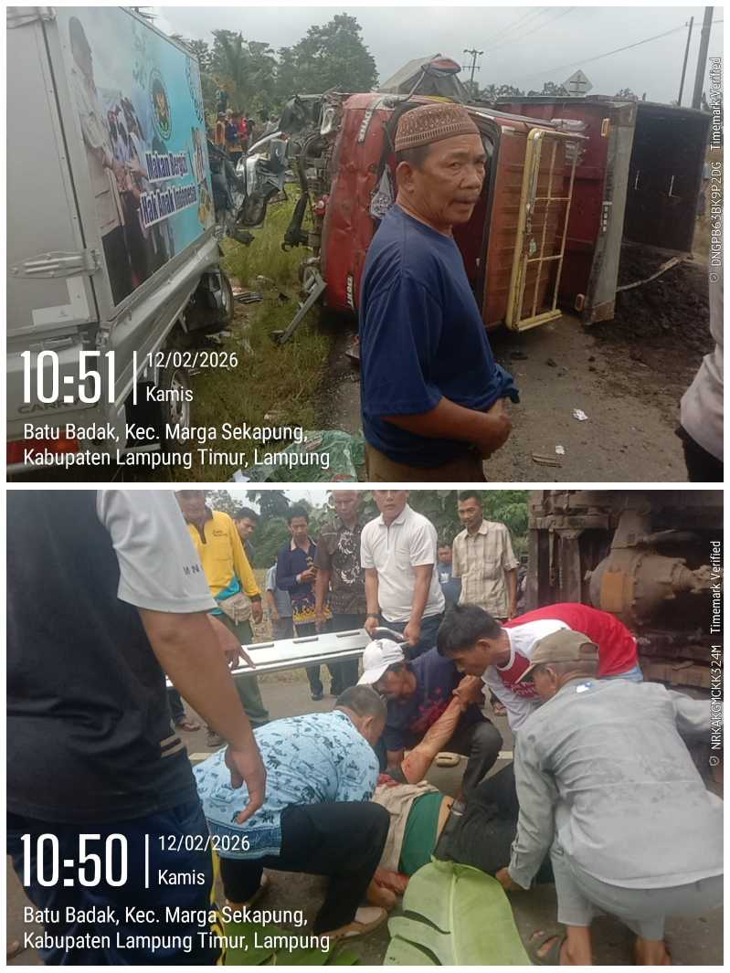 Lampung Timur, pantaukorupsi.com – Kecelakaan lalu lintas terjadi di ruas jalan perbatasan Batubadak–Bungkuk, Kecamatan Marga Sekampung, Kabupaten Lampung Timur, pada Kamis (12/2/2026).