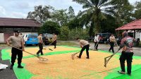 Dukung Ketahanan Pangan, Personil Polres Melawi Lakukan Penjemuran Jagung di Sela-sela Pekerjaan Kantor