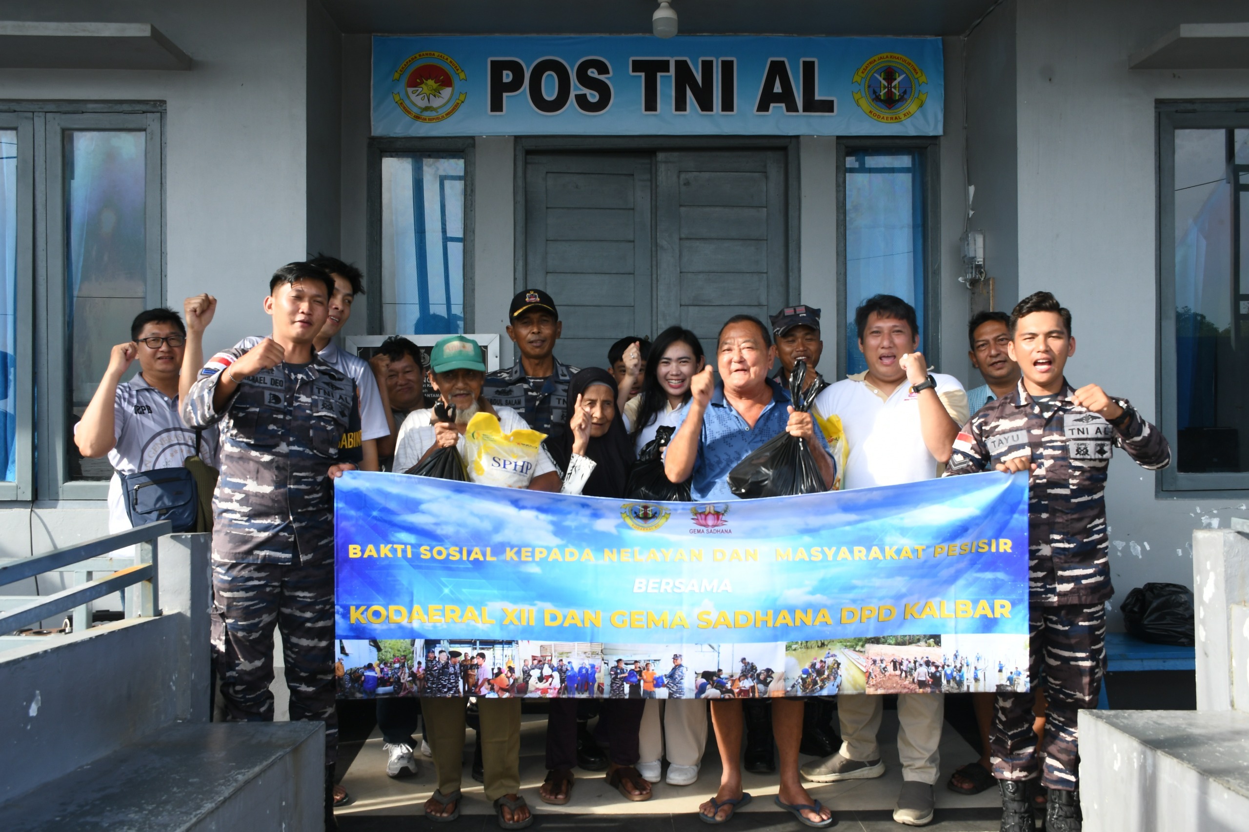 Sebanyak 50 warga nelayan dan masyarakat pesisir menerima bantuan sembako dalam suasana penuh kebersamaan. Melalui kegiatan bakti sosial ini, Kodaeral XII menegaskan komitmennya untuk terus hadir di tengah masyarakat pesisir, tidak hanya dalam menjaga keamanan laut, tetapi juga melalui aksi sosial yang bermanfaat dan berkelanjutan. Kodaeral XII melalui Posal Sungai Kakap menjadi simpul kepedulian sosial TNI Angkatan Laut sekaligus memperkuat kemanunggalan TNI dengan rakyat di wilayah pesisir Kalimantan Barat.