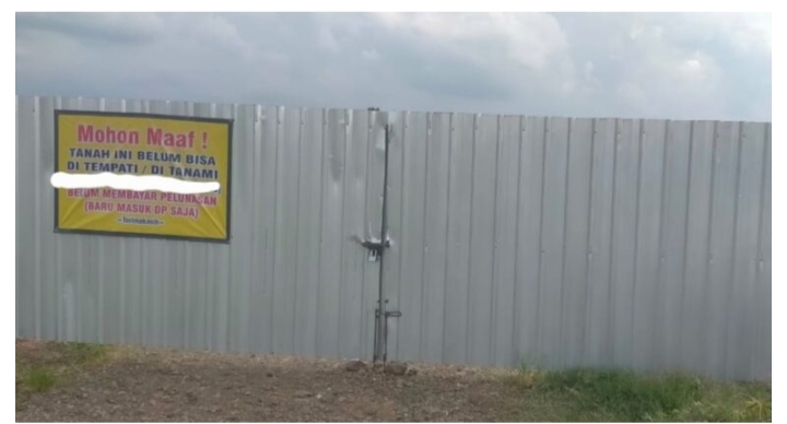 Tanah yang telah dibagi menjadi 54 kavling tersebut kini dipasang portal oleh pemilik. IK mengatakan langkah itu terpaksa diambil karena tidak mendapat kepastian dari pembeli. “Kabarnya kavling-kavling itu sudah laku dijual kepada orang lain, tetapi pembayaran kepada saya belum dilakukan. Karena tanpa kejelasan, akhirnya tanah itu kami portal,” kata IK.