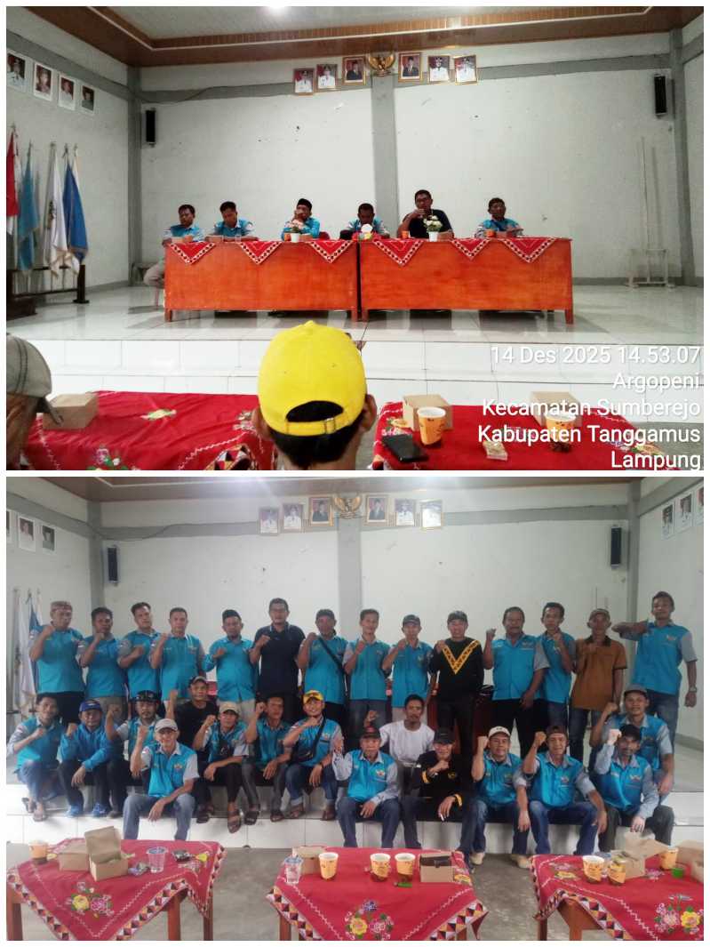 Tanggamus, pantaukorupsi.com — Dewan Pimpinan Persatuan Penggerak Aspirasi Indonesia (PPAI) Kabupaten Tanggamus menggelar musyawarah organisasi di Kantor Pekon Argofeni, Kecamatan Sumberejo, pada Minggu, 14 Desember 2025. Musyawarah ini bertujuan melakukan konsolidasi serta penataan struktur kepengurusan untuk memperkuat arah dan peran organisasi di tingkat kabupaten.