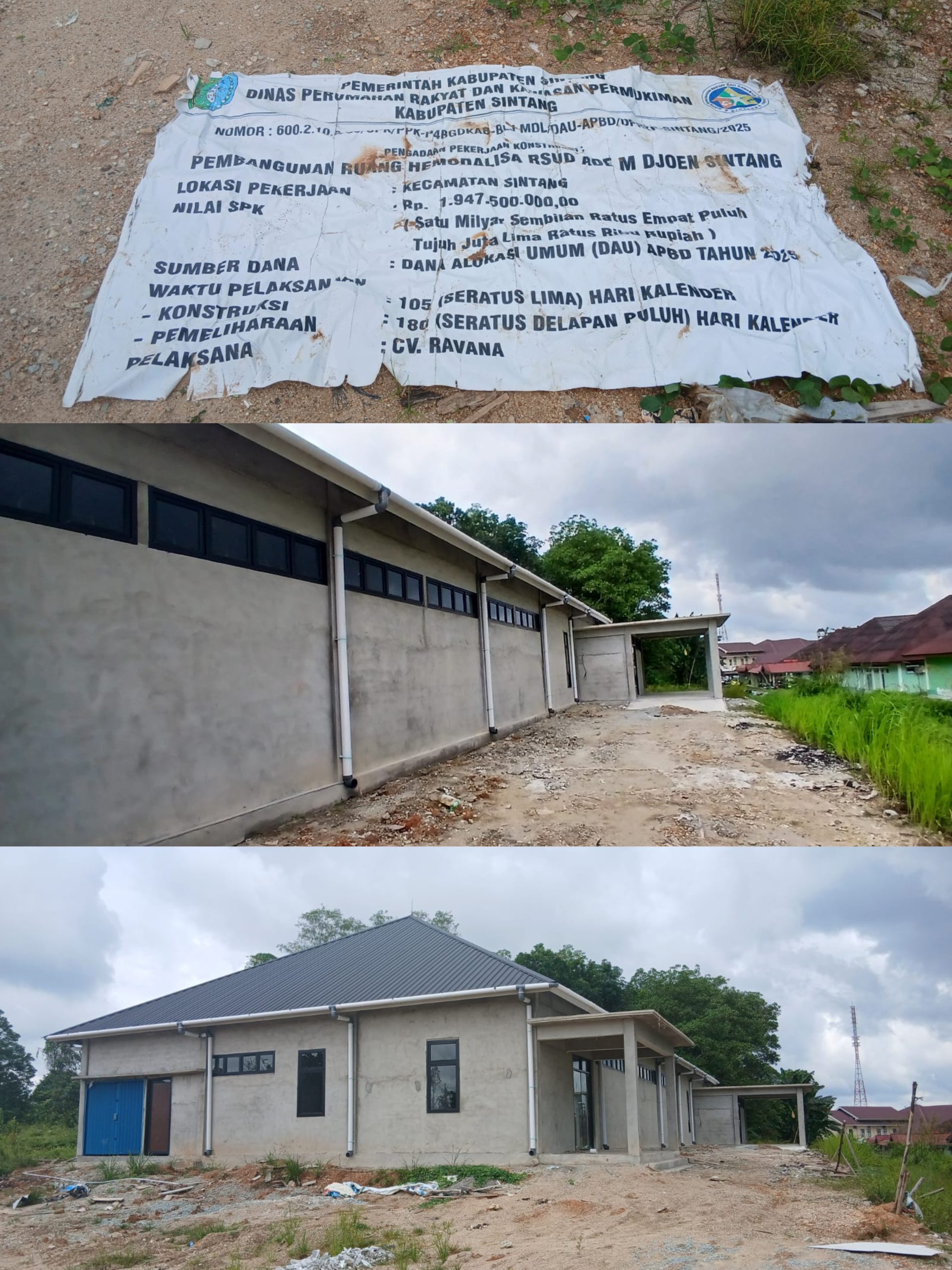 Kalbar, Sintang: Harusnya Desember 2025 Tuntas, tetapi yang terjadi, hingga 2026 proyek pembangunan Ruang Hemodalisa RSUD Sintang segede Rp 1,9 Miliar belum juga menunjukan tanda-tanda klir.