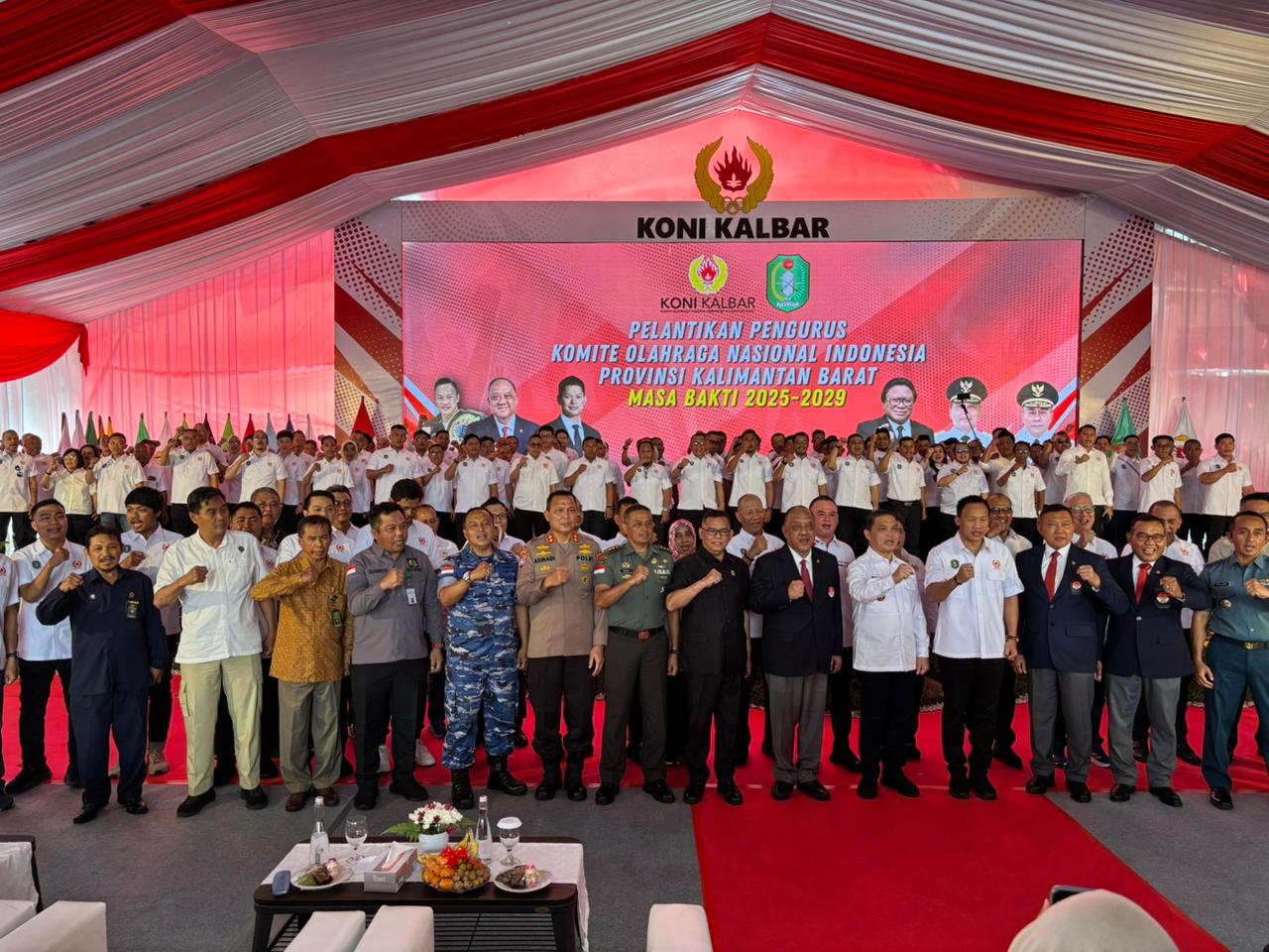 Pontianak, Polda Kalbar* – Kepolisian Daerah Kalimantan Barat menegaskan komitmennya dalam mendukung kemajuan dunia olahraga di Bumi Khatulistiwa. Hal tersebut dibuktikan dengan kehadiran perwakilan Polda Kalbar dalam acara pelantikan dan pengukuhan Pengurus Komite Olahraga Nasional Indonesia (KONI) Provinsi Kalimantan Barat masa bakti 2025-2029 yang digelar di halaman Grand Hotel Mahkota Pontianak, Rabu (28/1/2026) pukul 14.00 WIB.