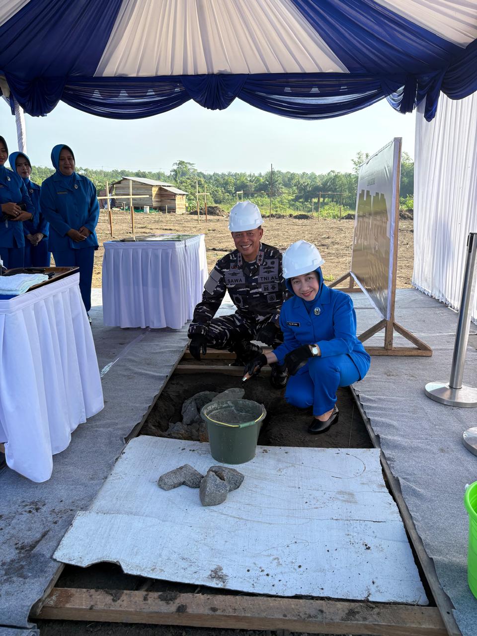 Kotawaringin Barat, TNI AL, Kodaeral XII – Komandan Kodaeral XII, Laksamana Muda TNI Sawa, S.E., M.M., CIQaR., bersama Ketua Daerah Kodaeral XII Gabungan Jalasenastri Koarmada RI Ny. Ani Sawa, para pejabat Kodaeral XII, serta prajurit Lanal Kumai, melaksanakan peletakan batu pertama pembangunan rumah dinas (Rumdis) Type 45 sebanyak empat unit beserta sarana prasarana pendukung di Markas Lanal Kumai, Kabupaten Kotawaringin Barat, Kalimantan Tengah, Jumat (13/3).